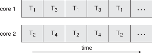 - 태스크 병렬 처리에는 여러 코어에 태스크 분배가 포함 된다.
