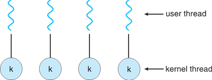 - 일대일 모델은 각 사용자 스레드를 각각 하나의 커널 스레드로 사상함.